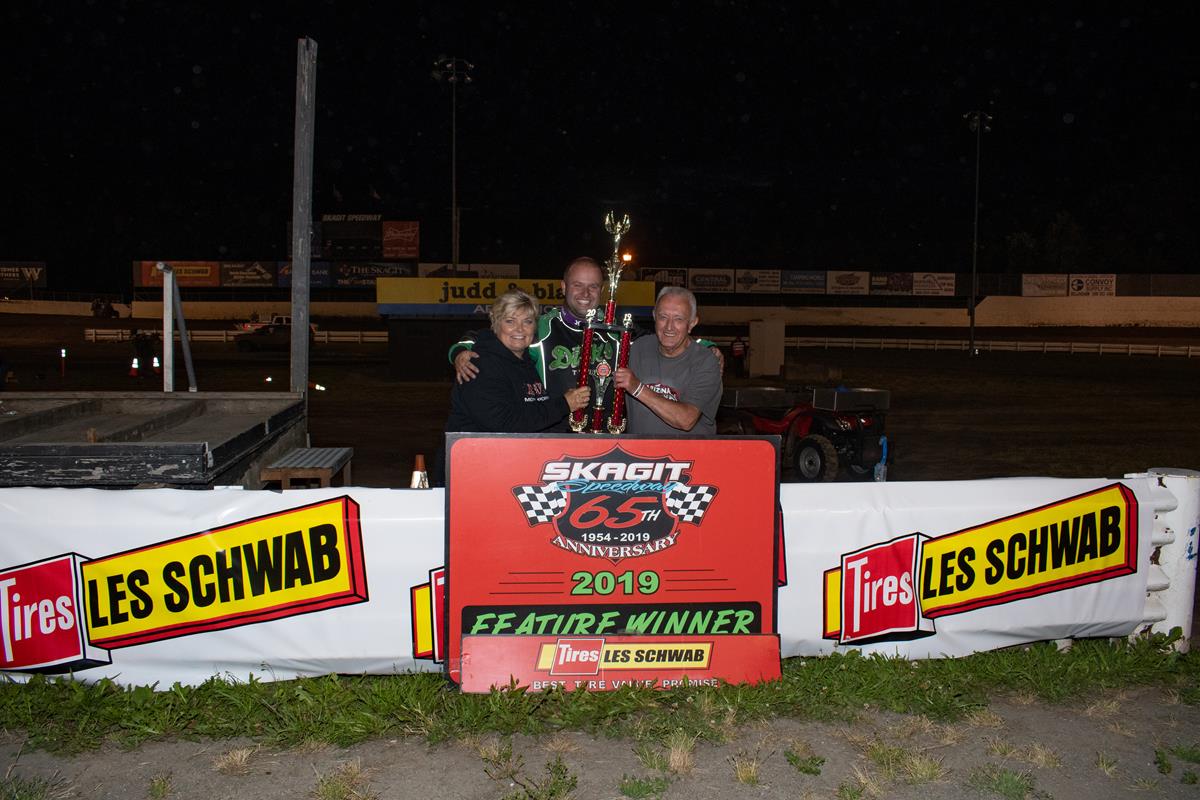 Alger, WA - A huge crowd packed Skagit Speedway for the Les Schwab Midseason Championship night and fireworks extravaganza and saw four familiar faces grace victory lane. Colton Heath and Chase Goetz entered the night as the respective point leaders in their division and came away with wins, while Kevin Smith and Adam Holtrop were repeat winners in their classes. The top eight cars in owner points were locked in to the scramble - cars ninth and deeper all qualified for their starting spots in the sprint car divisions. In the stock car classes, six cars went to the scramble off owner points, while positions seven on back had their A Main spots determined by owner points highest to lowest coming into the night.
