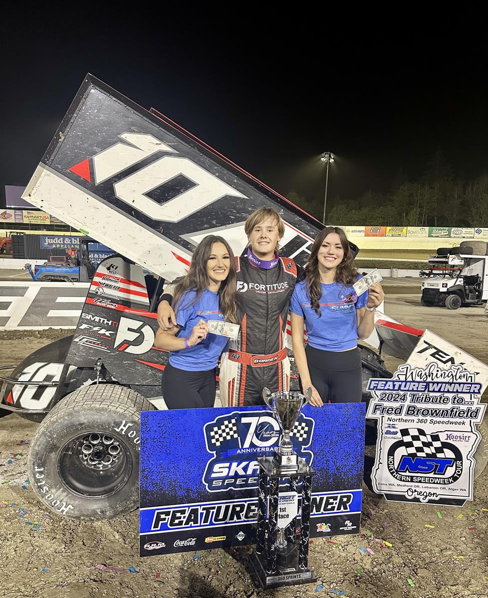 Alger, WA - The 5th round of the 2024 Northern Speedweek Tour “Tribute to Fred Brownfield” rolled into Skagit Speedway on Friday night for the first night of the Bob’s Burgers & Brew Summer Nationals. A familiar sight greeted fans who have been following the tour as Dominic Gorden drove from 18th place to take his fifth straight win Speedweek.