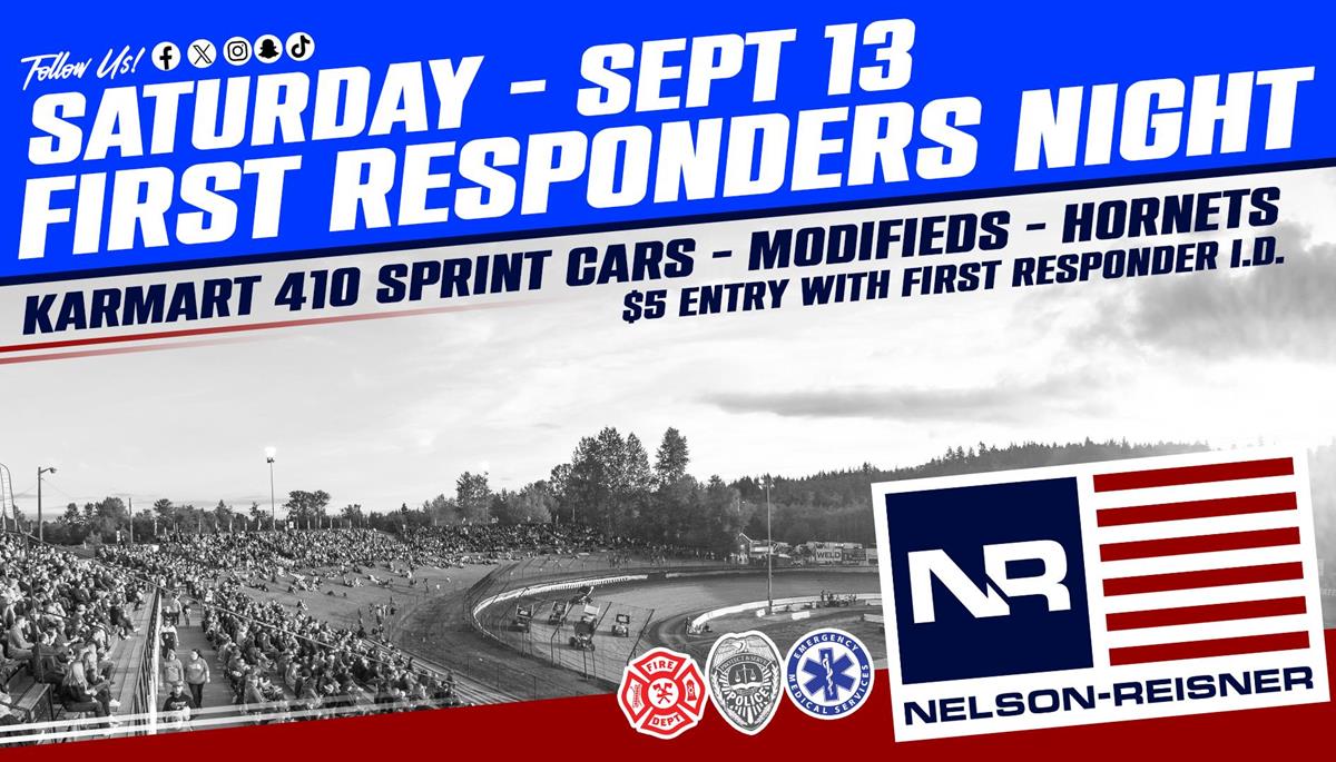 Saturday, Sept.13, is Nelson Reisner First Responder Night at Skagit Speedway. Join us as the KarMART USA 410 Sprint Cars come roaring back and joining them are the IMCA Modifieds and the Hornets. All First Responders get in for just $5. To receive the $5 ticket when buying online use the Verify with ID.me feature on the website